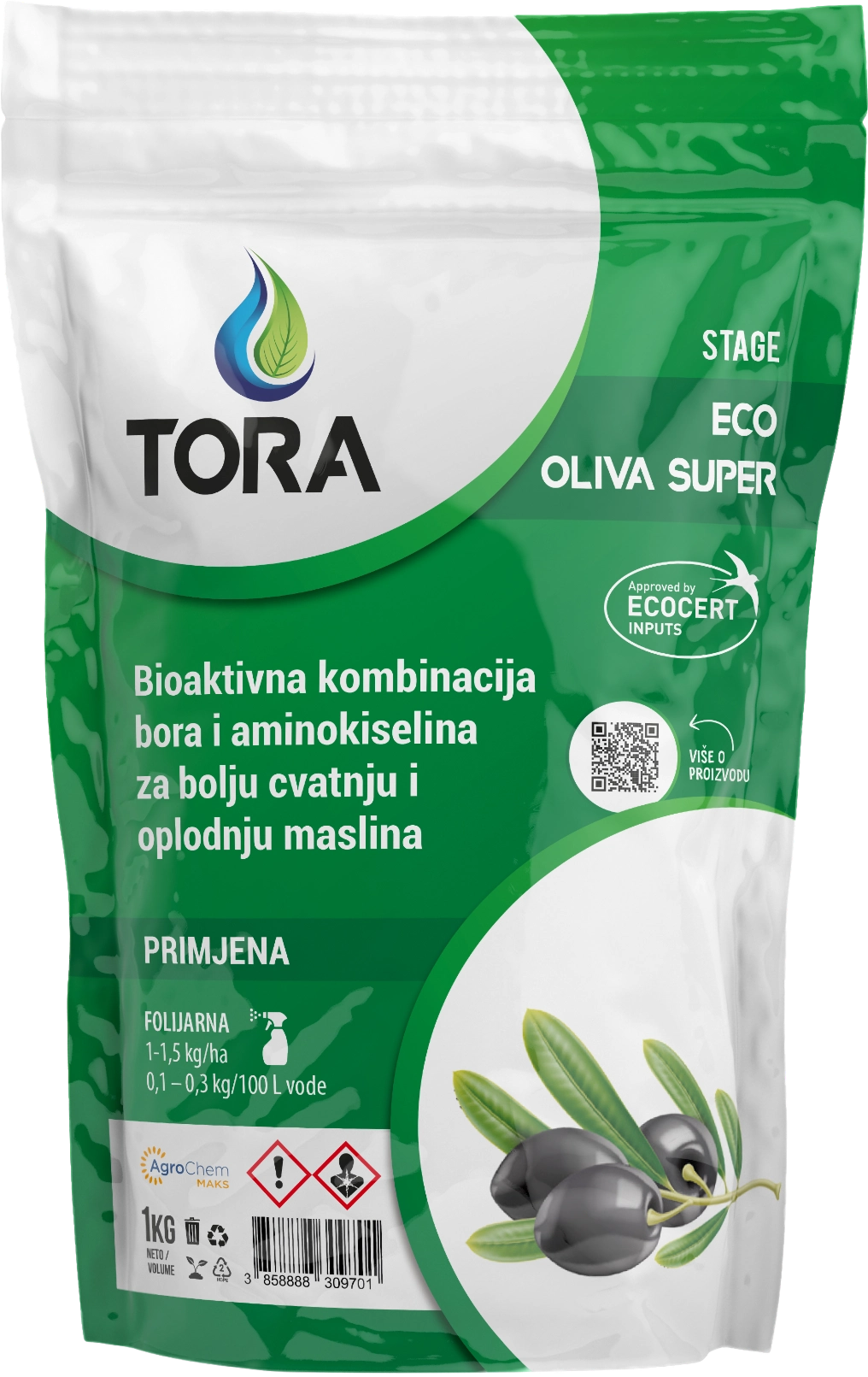 Gnojivo s mikroelementima, namijenjeno za stimulaciju cvatnje i oplodnje. Sadrži optimalne količine mikroelemenata bora, cinka i mangana formuliranih s bioaktivnim komponentama koje svojim djelovanjem potiču stvaranje cvjetova i pospješuju njihovu oplodnju. Sam proces oplodnje vezan je uz mnogobrojne čimbenike i često ga klimatske prilike ili nedostaci hranjiva mogu značajno poremetiti. Pravovremenim tretmanom može se značajno povećati rodni potencijal masline.