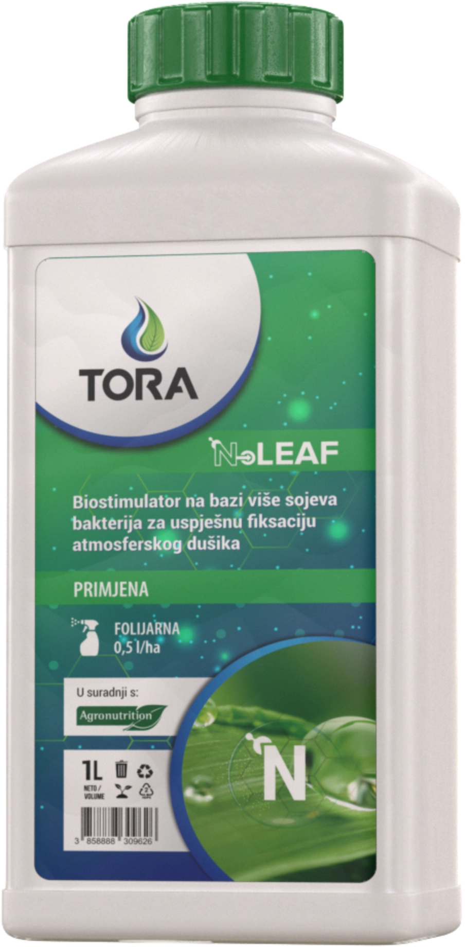 TORA N-LEAF novi je revolucionarni folijarni biostmulator na bazi 3 soja ekskluzivnih filosfernih bakterija (2 soja Methylobacterium i 1 soj Arthrobacter) koje se hrane organskim spojevima s biljne površine, a zauzvrat biljku opskrbljuju značajnim količinama dušika i štite biljku od različitih patogenih organizama. Bakterije fiksiraju atmosferski dušik i pretvaraju ga u biljci prihvatljive amonijske i nitratne oblike, povećavaju učinkovitost, iskoristivost i dostupnost biljnih hranjiva. Stimuliraju biljne hormone (aukisn i citokinin) pa značajno utječu na rast, razvoj i fotosintetsku aktivnost biljke.