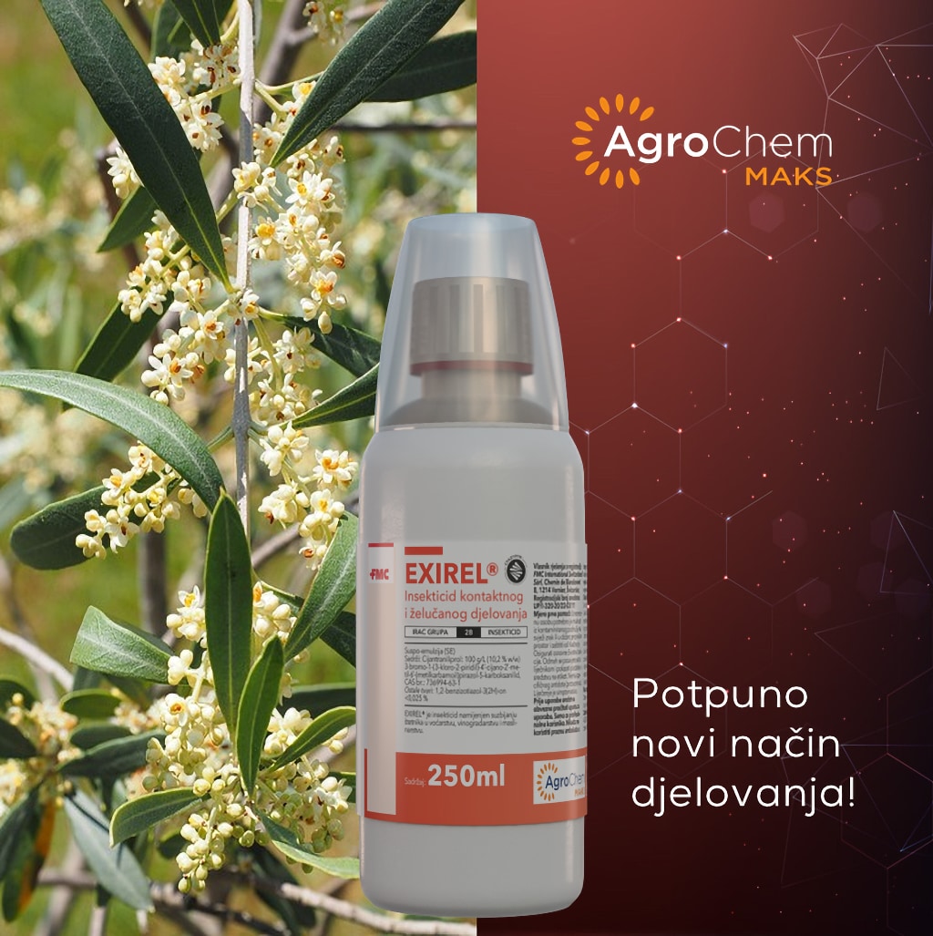Preporuka je pri insekticidnom tretmanu dodati i ekološko, folijarno i biostimulativno gnojivo TORA ECO OLIVA SUPER u dozi 0,1-0,6 kg/100 L vode. Raspon doze ovisi o fiziološkom stanju masline i o učestalosti prihrane gnojivima i biostimulatorima. EXIREL i TORA ECO OLIVA SUPER izrazito su kompatibilni!